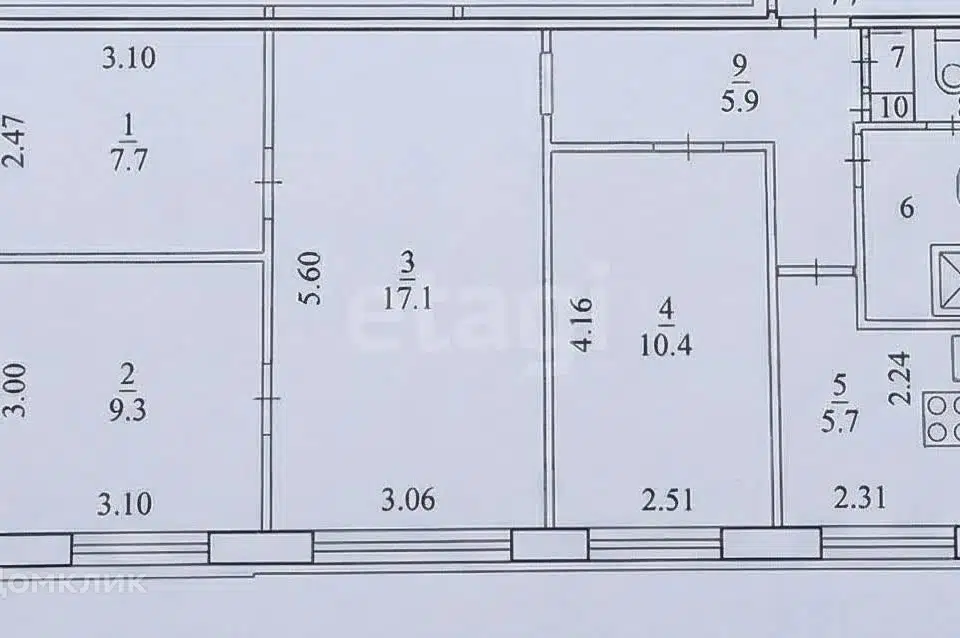 3-комн. кв., 61.2 м², 9/9 этаж