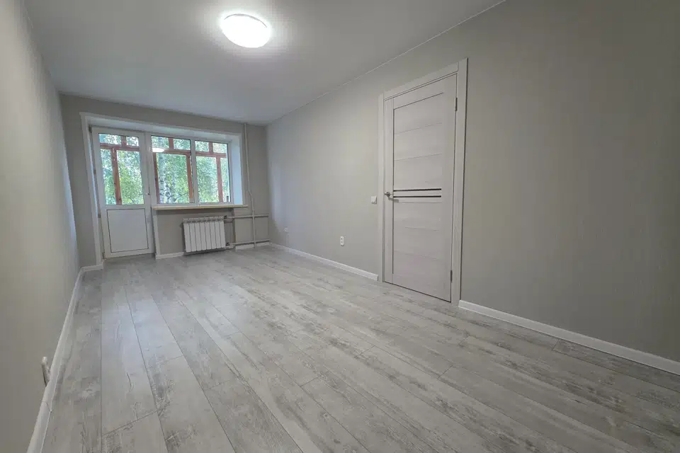 Квартира находится на 3 этаже дома индивидуальной постройки. Удобная планировка и высокие потолки - 2.8 м., комната 18 кв. метров с нишей под встроенный шкаф. В комнате сделан ремонт в 2025 году, выровнены стены, обновлена электрика, установлен натяжной потолок.