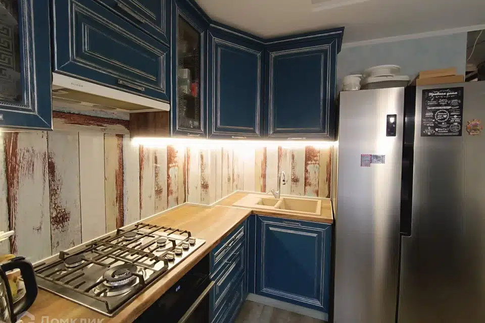 Просторная кухня — это еще один значительный плюс. Здесь есть достаточно места для размещения обеденного стола, а также для хранения всех необходимых кухонных принадлежностей.