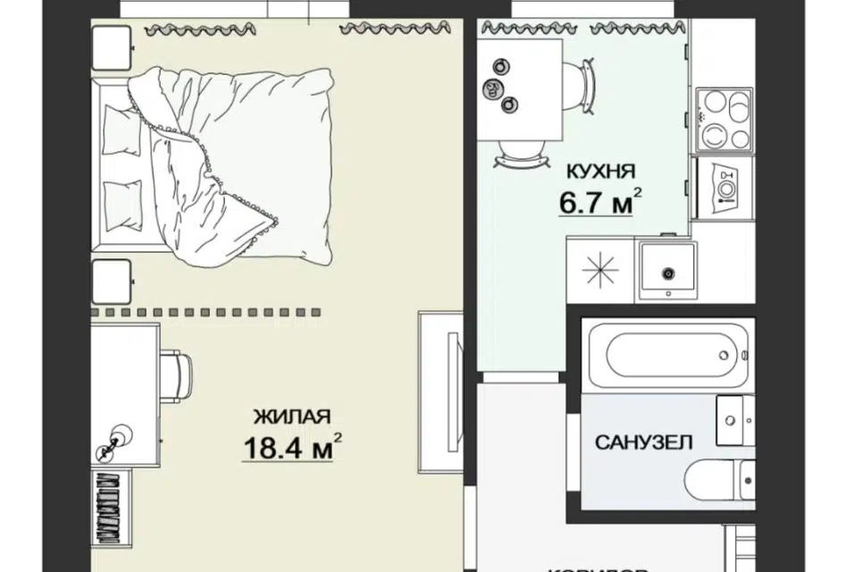 1-комн. кв., 31.1 м², 9/9 этаж