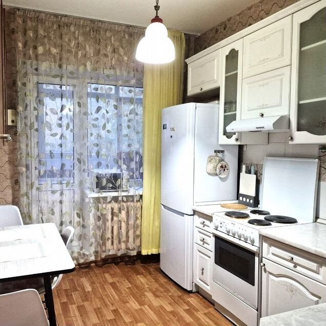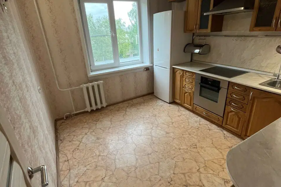 В квартире остается кухонный гарнитур, в прихожей 2 больших шкафа, в спальне большой шкаф-купе.