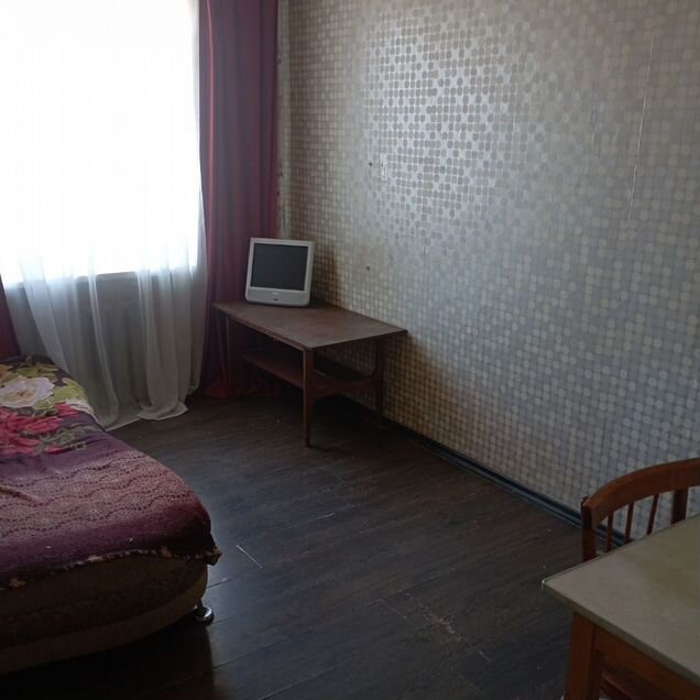 Кухня 6 кв. М., комната 18 кв. М. С балконом, окна во двор; балкон застеклен. Санузел совмещен.