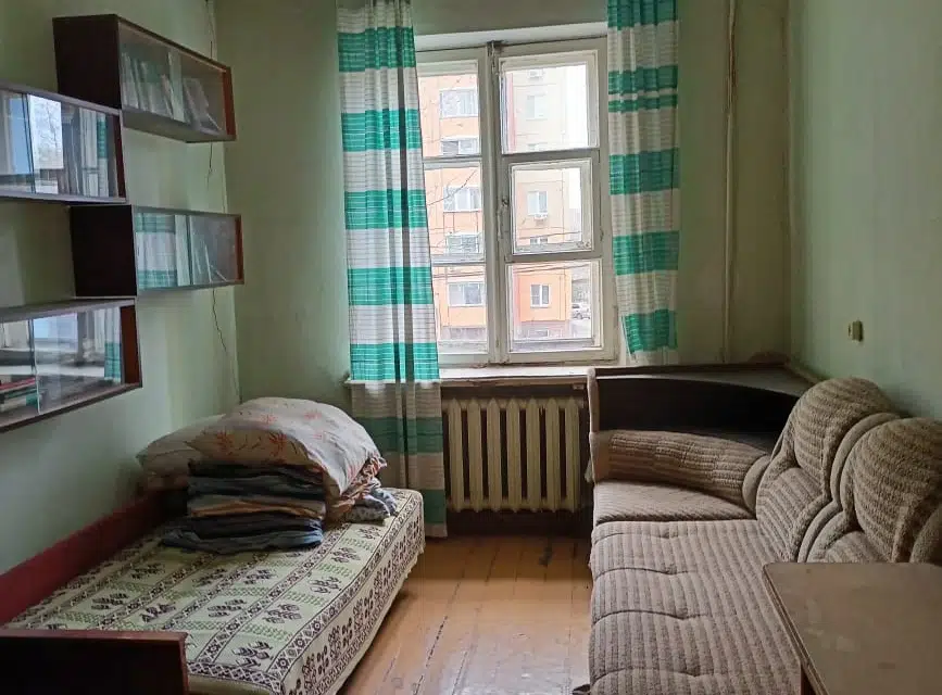 - в комнате полностью сделан ремонт: натяжной потолок, новые красивые обои, светлый линолеум