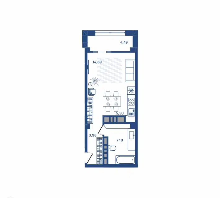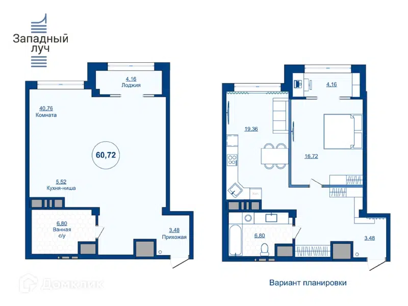 • Просторная планировка: две раздельные комнаты (спальня и гостиная, совмещенная с кухней)