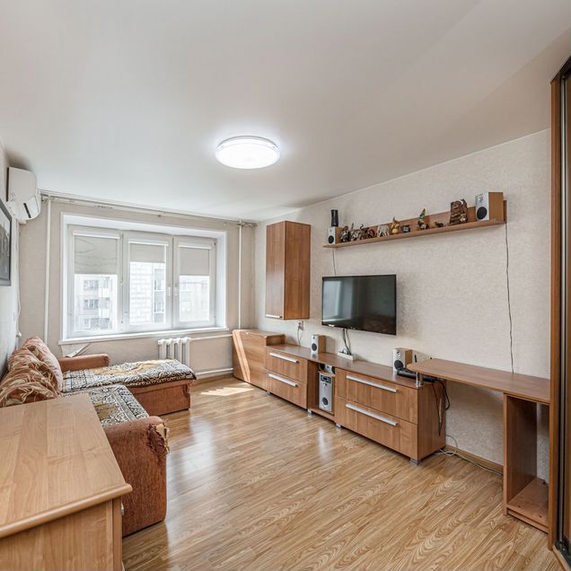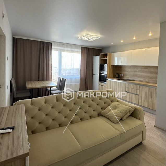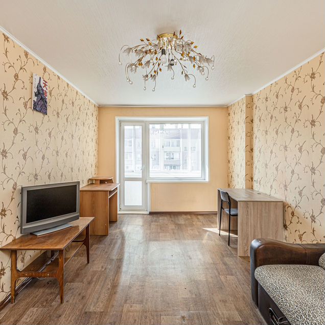 Квартира светлая, теплая, уютная. Комната и кухня раздельные. Две отдельные лоджии. Кухонный гарнитур со встроенной техникой, шкаф купе, прихожая, телевизор.