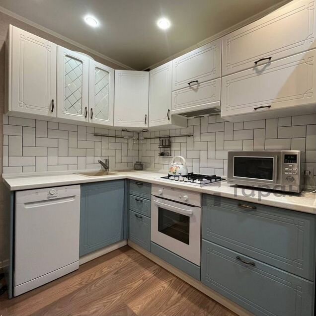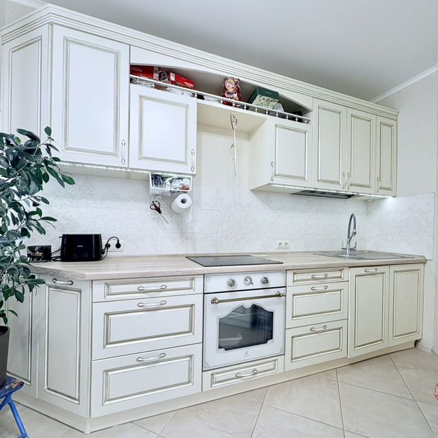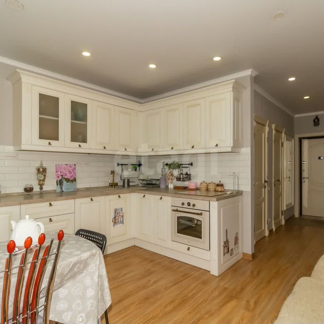 Покупателям останется встроенный шкаф в комнате, и кухонный гарнитур с встроенной техникой - духовой шкаф и посудомоечная машина Воsсh, варочная поверхность, вытяжка. Фурнитура Blum. Остальная техника и мебель - по договоренности.