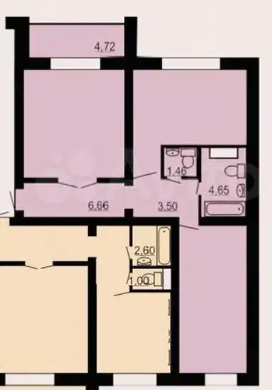 3-комн. кв., 74 м², 1/2 этаж