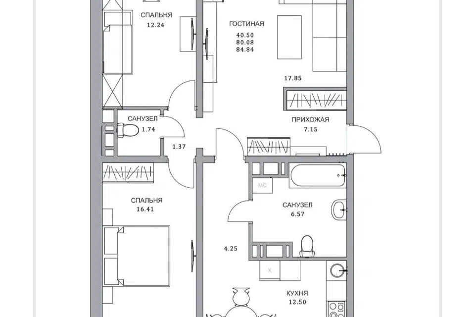 3-комн. кв., 80 м², 8/17 этаж