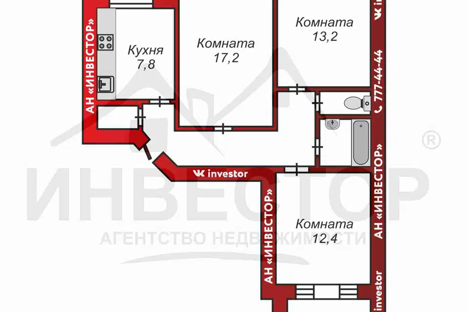 3-комн. кв., 56.3 м², 5/17 этаж