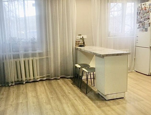В квартире остаётся кухонный гарнитур, водонагреватель и мебель в ванной, светильники, карнизы для штор.