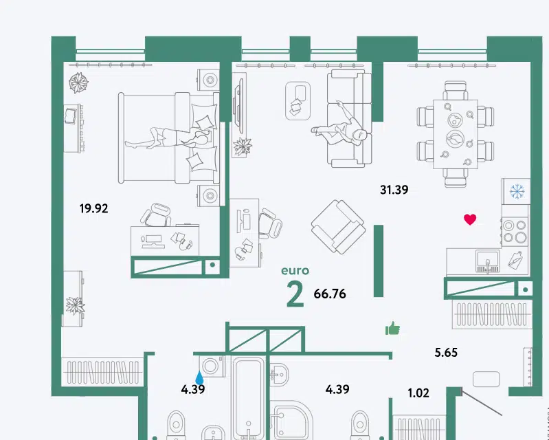 2-комн. кв., 66.76 м², 31/32 этаж