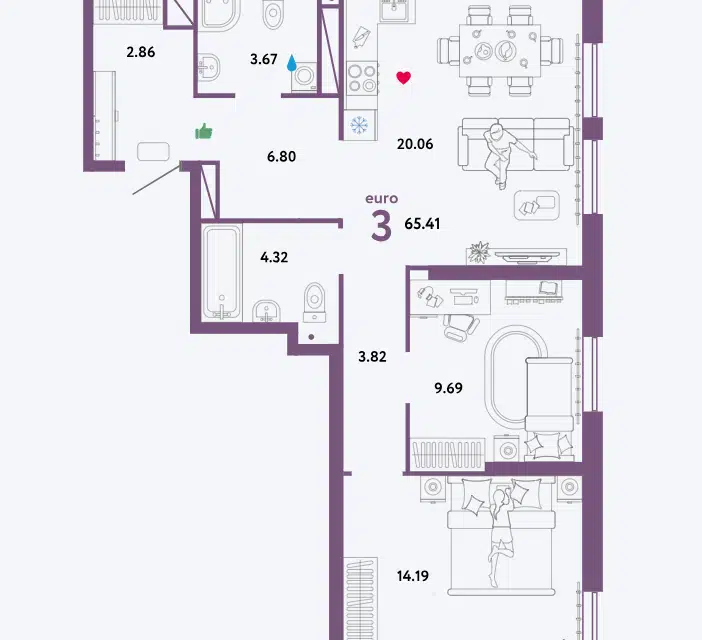 2-комн. кв., 65.41 м², 25/32 этаж