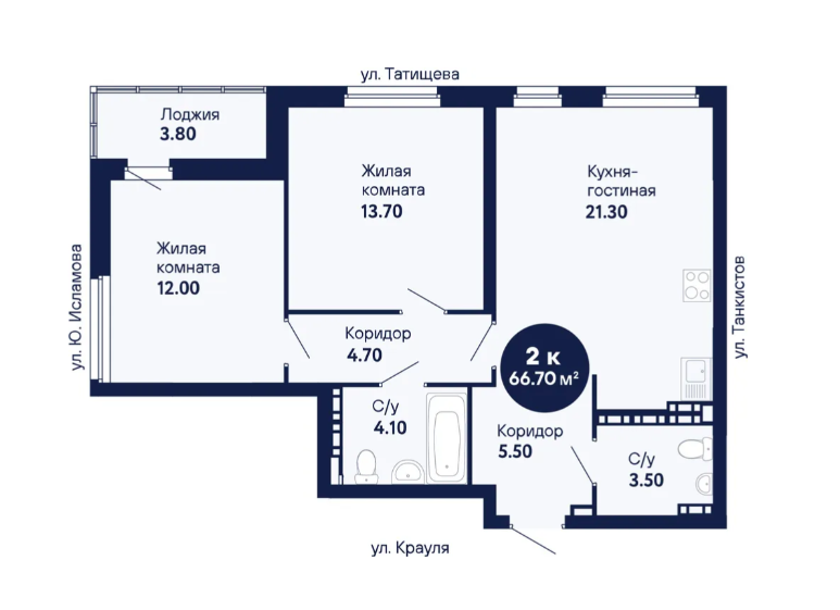2-комн. кв., 67.6 м², 3/26 этаж