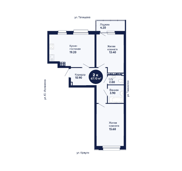 2-комн. кв., 67.71 м², 10/22 этаж