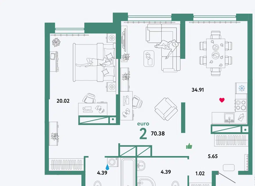 2-комн. кв., 70.38 м², 28/32 этаж