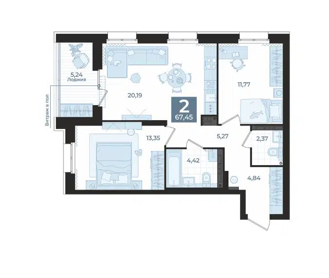 2-комн. кв., 67.45 м², 8/16 этаж