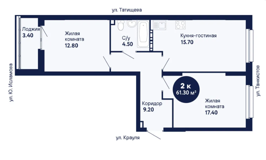 2-комн. кв., 61.65 м², 1/22 этаж