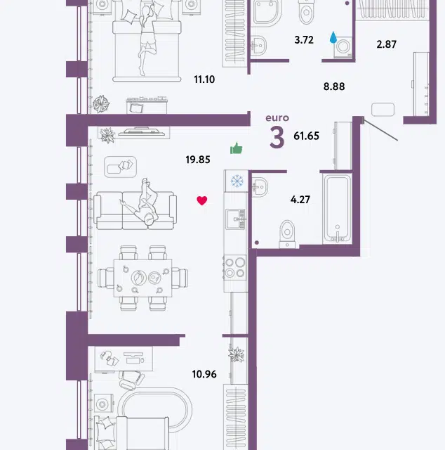 2-комн. кв., 61.65 м², 2/33 этаж