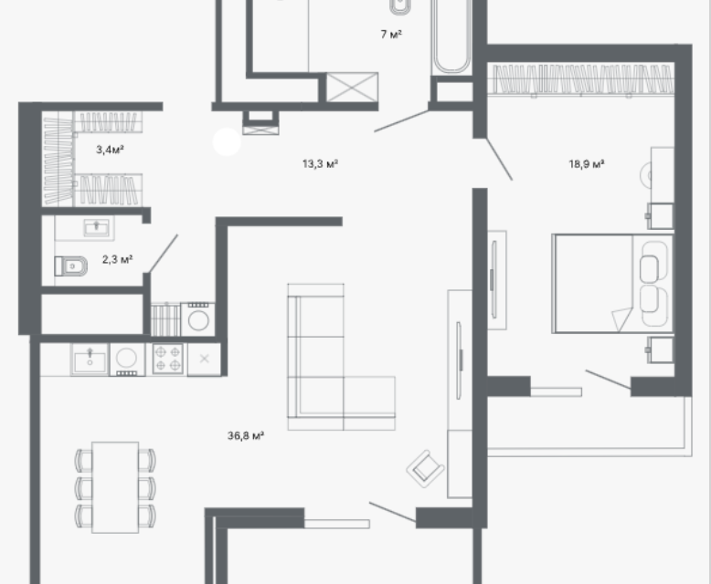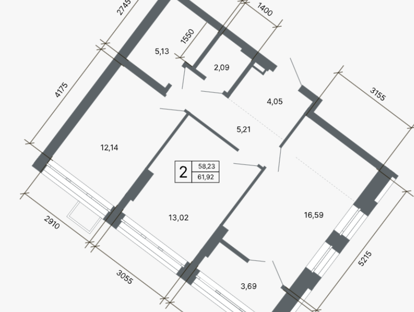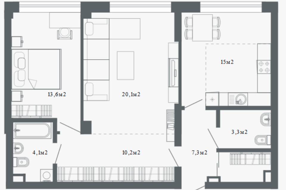 2-комн. кв., 57.9 м², 21/22 этаж