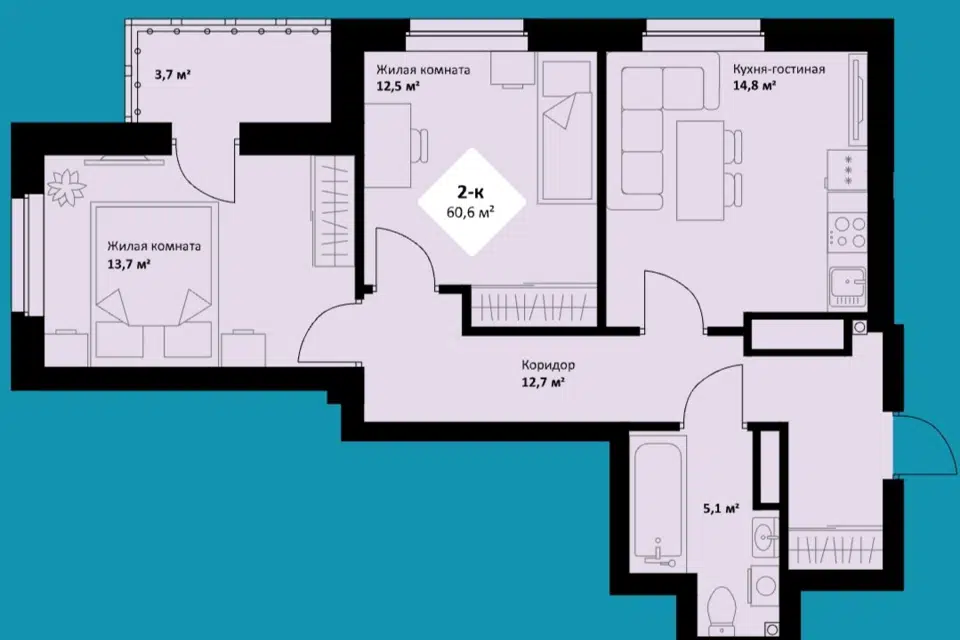 Объект N 194951. В продаже новая 2-комнатная квартира в доме комфорт-класса — уютный уголок для счастливой жизни!