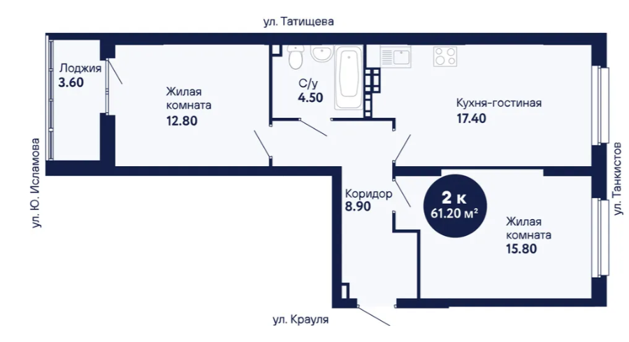 2-комн. кв., 43.4 м², 8/9 этаж