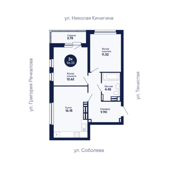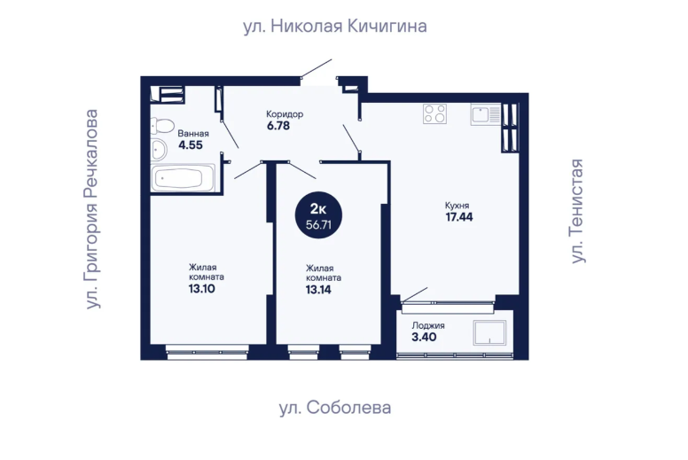 2-комн. кв., 56.33 м², 24/24 этаж