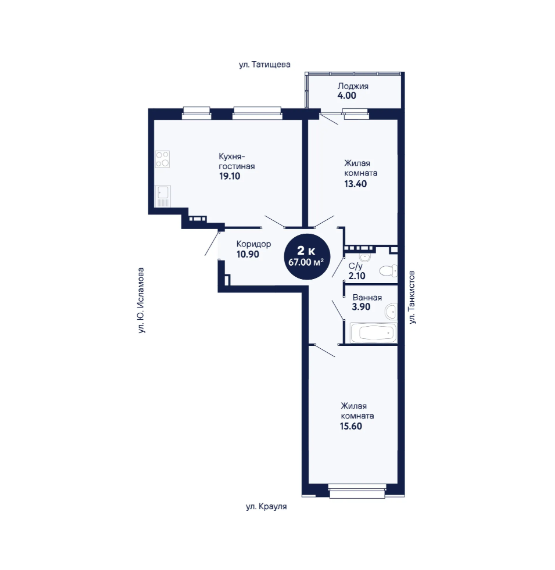 2-комн. кв., 67.71 м², 10/22 этаж