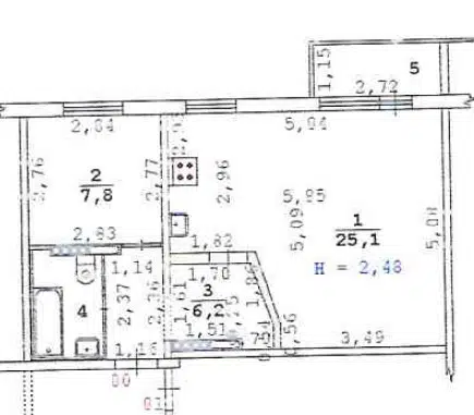 2-комн. кв., 43.4 м², 3/5 этаж