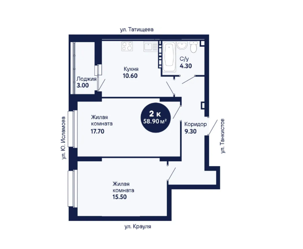 2-комн. кв., 60.3 м², 9/9 этаж