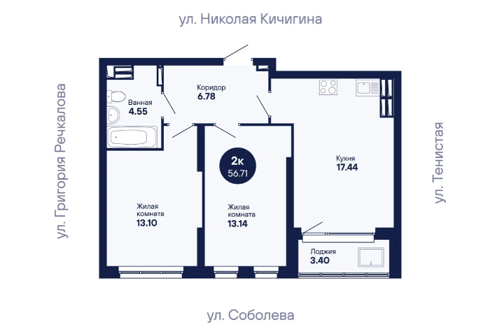 2-комн. кв., 56.71 м², 19/24 этаж