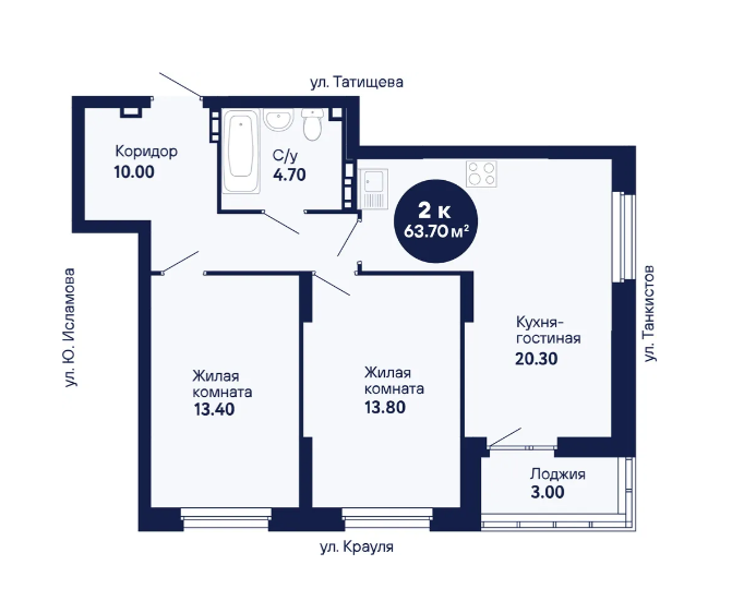 2-комн. кв., 43 м², 13/20 этаж