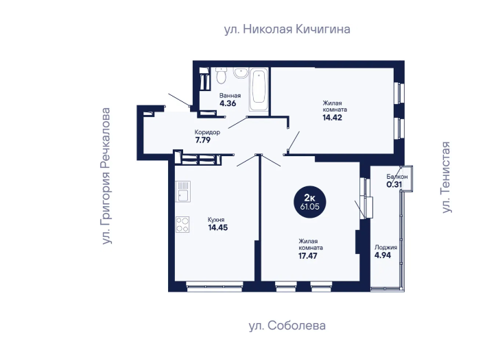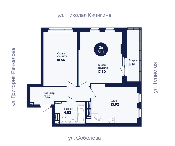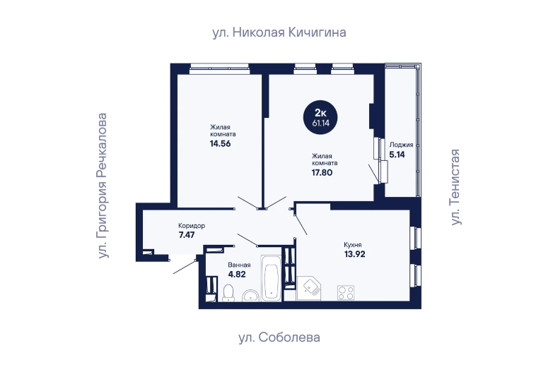 2-комн. кв., 61.14 м², 23/24 этаж