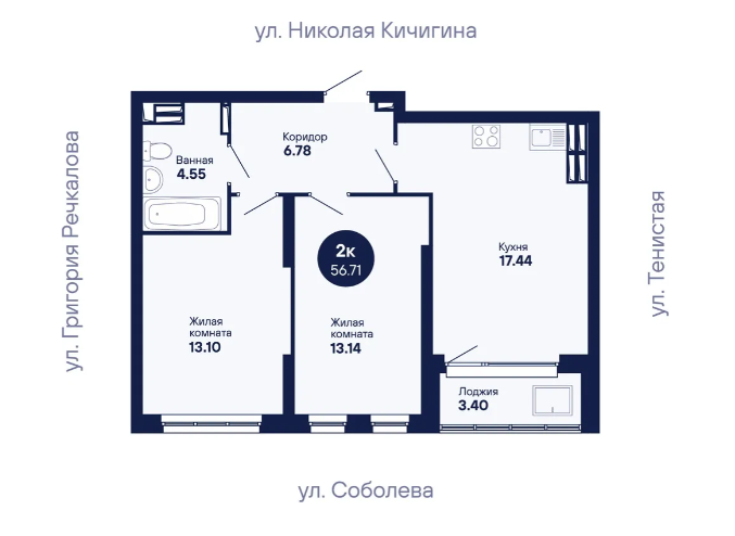 2-комн. кв., 56.7 м², 18/25 этаж