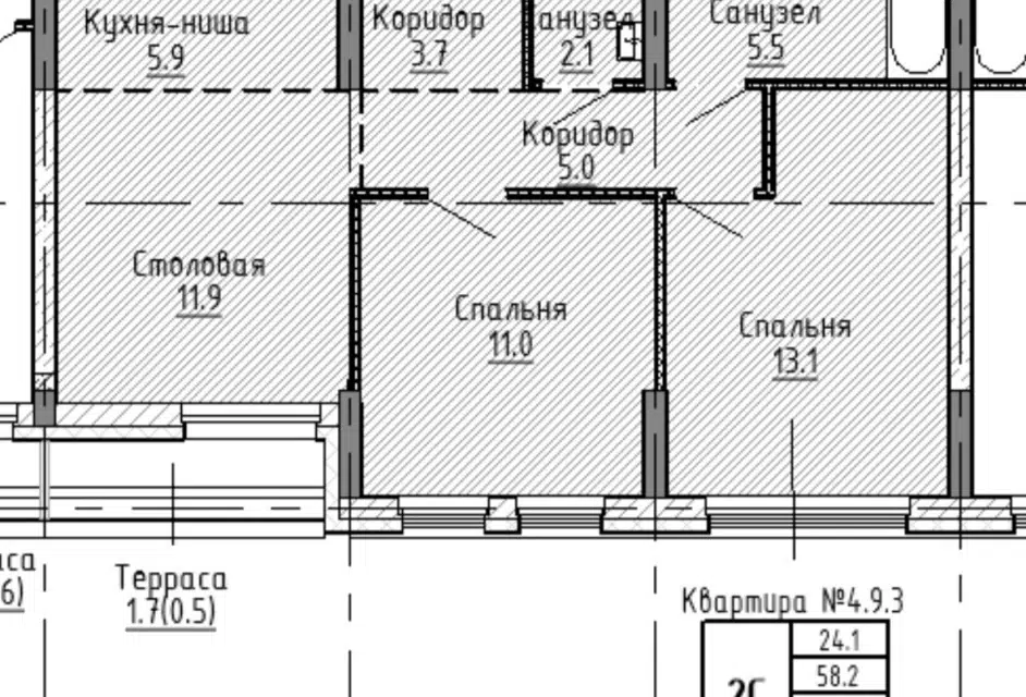 3-комн. кв., 58.1 м², 4/5 этаж