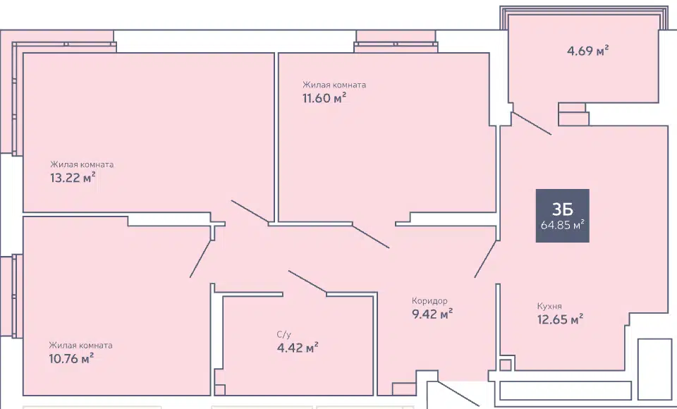 4-комн. кв., 64.1 м², 7/9 этаж