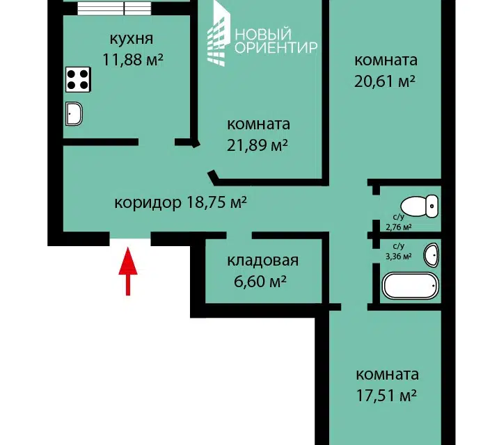 3-комн. кв., 88.4 м², 9/16 этаж