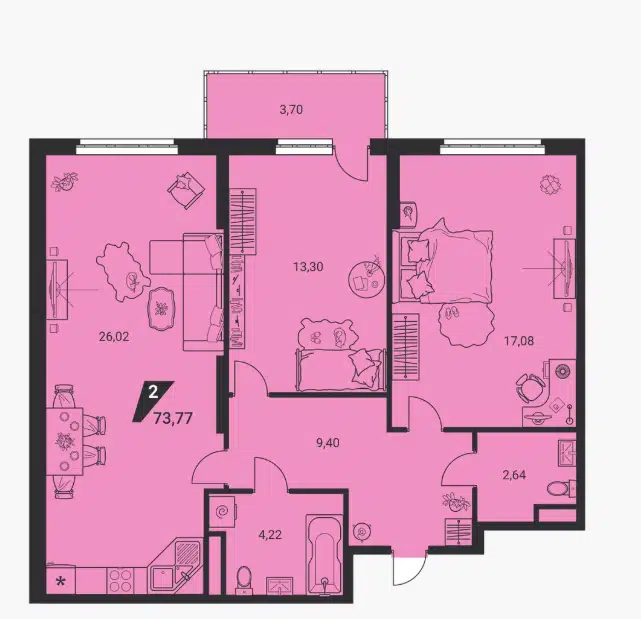 3-комн. кв., 73.77 м², 2/25 этаж