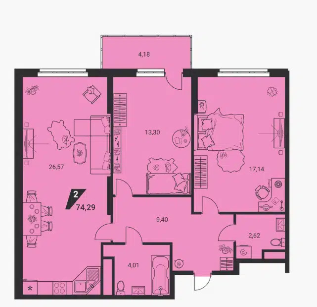 3-комн. кв., 74.29 м², 18/25 этаж
