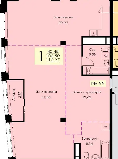 1-комн. кв., 52 м², 12/25 этаж