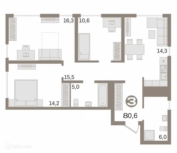 3-комн. кв., 80.6 м², 21/35 этаж