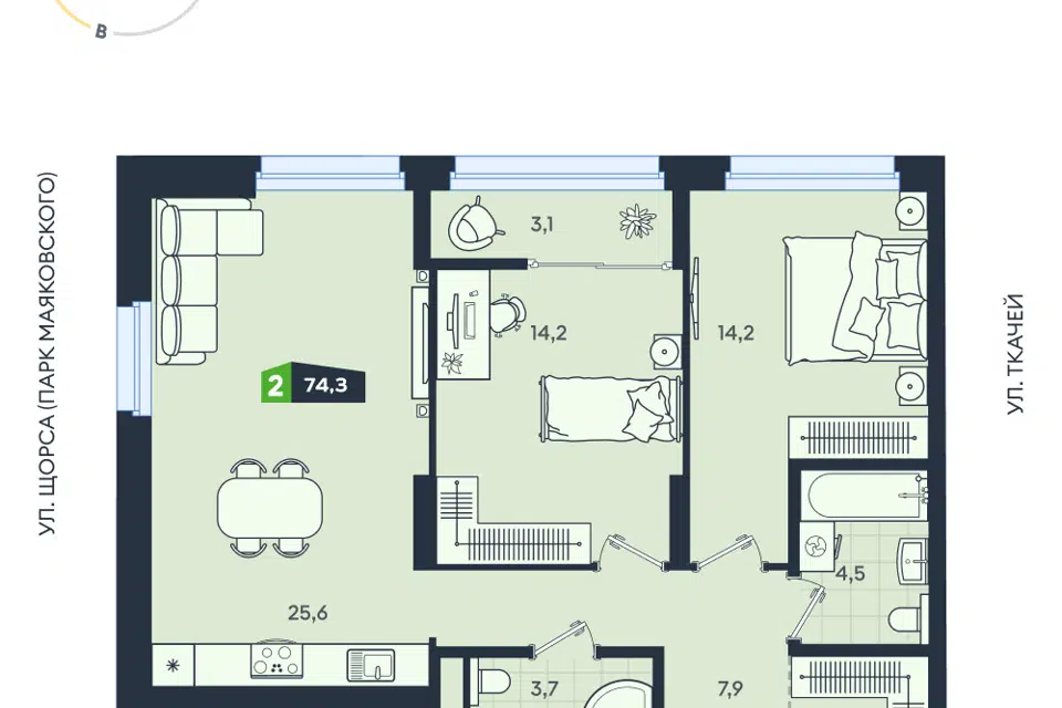 3-комн. кв., 74.4 м², 3/15 этаж