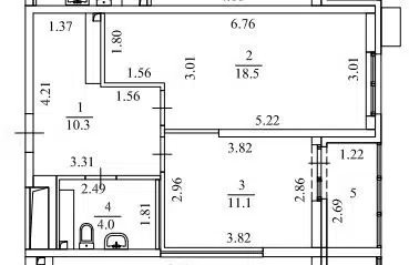 3-комн. кв., 69.6 м², 10/10 этаж