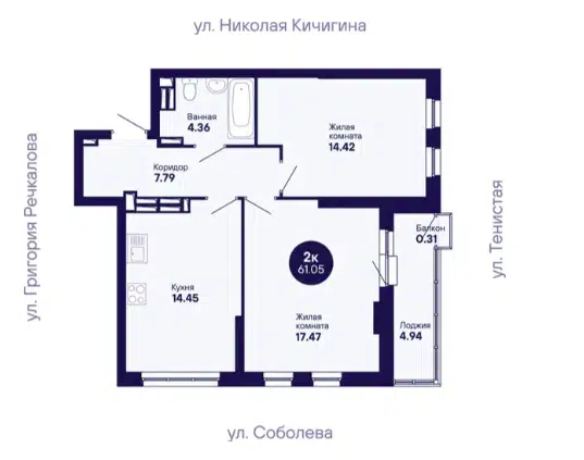2-комн. кв., 61.05 м², 23/24 этаж