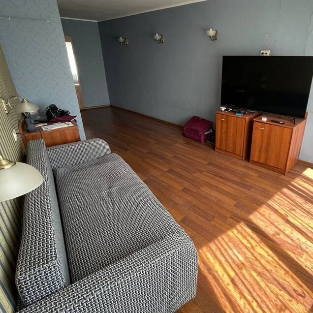 В планировке: просторная гостиная с кухней и три отдельные спальни.