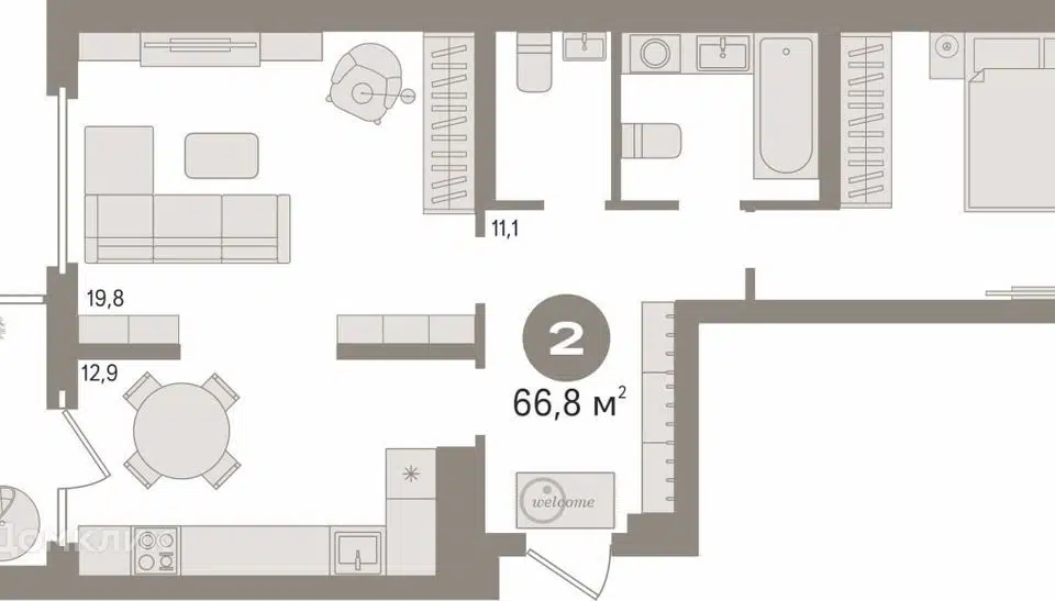 2-комн. кв., 66.8 м², 14/21 этаж
