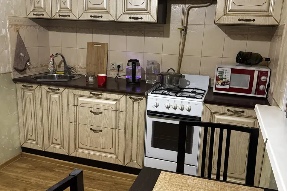Из мебели остается: кухонный гарнитур со встроенной техникой.