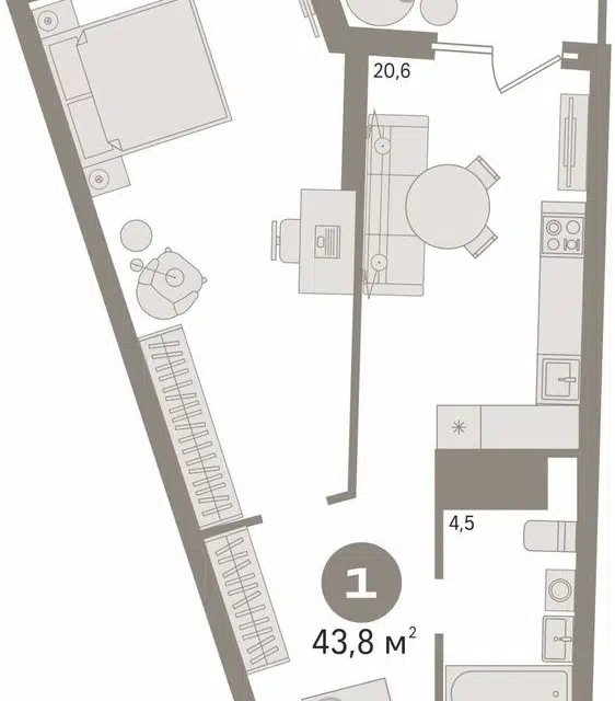 1-комн. кв., 43.8 м², 23/32 этаж