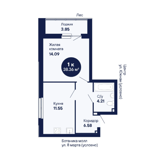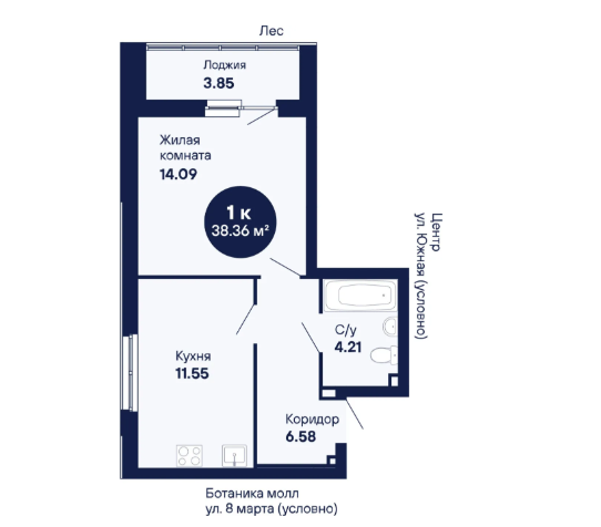 1-комн. кв., 38.36 м², 2/25 этаж