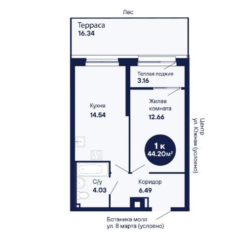 1-комн. кв., 44.2 м², 1/25 этаж