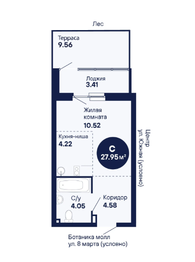 Студия, 27.95 м², 1/25 этаж